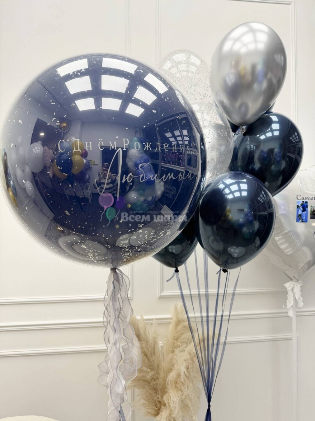 4) Если к шару добавляется еще и надпись, которая тоже имеет вес (так же как и перья, шарики и т.д.), то такие шары летают не более 2-3 суток и предназначены только для нескольких часов торжества. Да, они очень эффектные, но висят совсем недолго. Мы просим обращать внимание на данную информацию при заказе таких шаров.