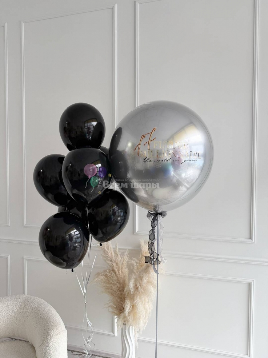 4) Если к шару добавляется еще и надпись, которая тоже имеет вес (так же как и перья, шарики и т.д.), то такие шары летают не более 2-3 суток и предназначены только для нескольких часов торжества. Да, они очень эффектные, но висят совсем недолго. Мы просим обращать внимание на данную информацию при заказе таких шаров.