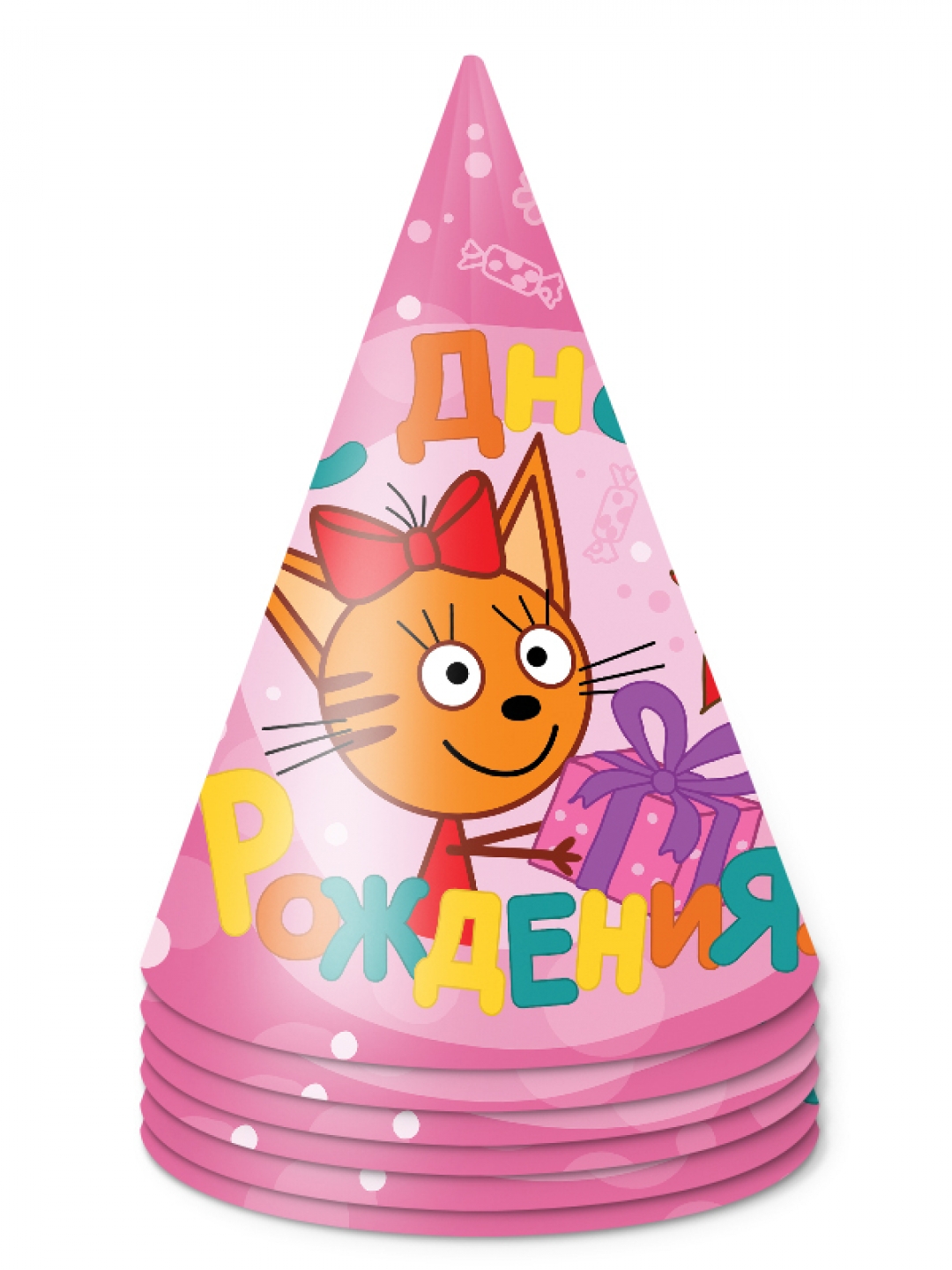 Колпаки, Три Кота, С Днем Рождения!, Розовый, 6 шт.
