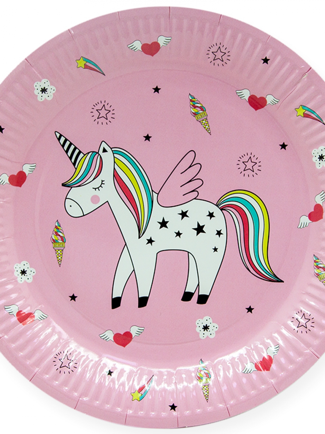 Тарелки 18 см Радужный единорог, Розовый, 6 шт.