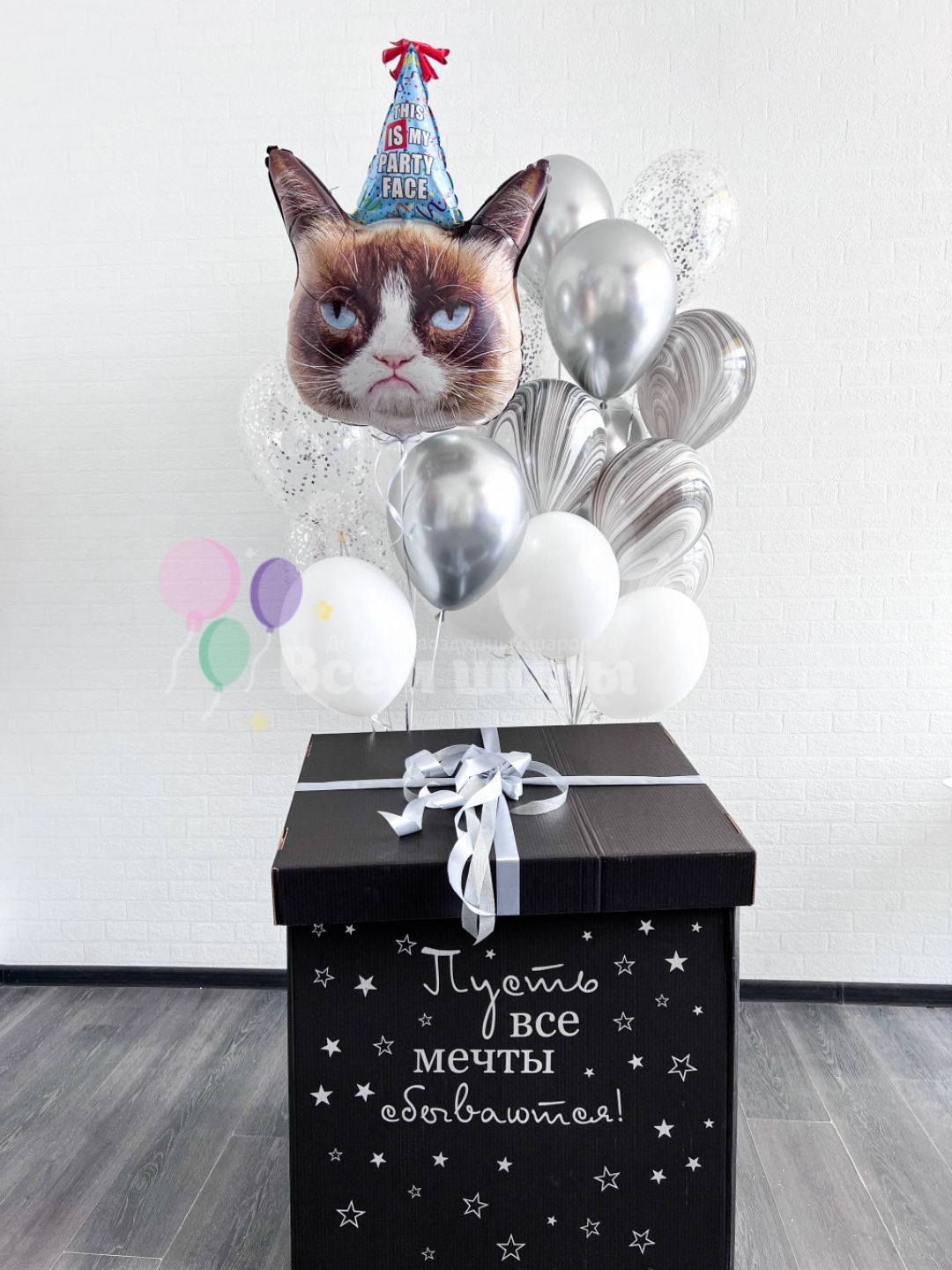 Воздушные шары на день рождения в коробке Сердитый кот