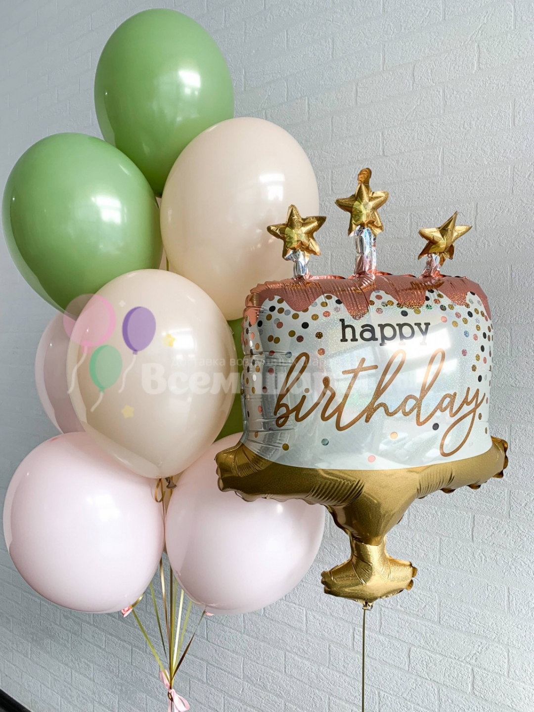 Воздушные шары и торт на день рождения