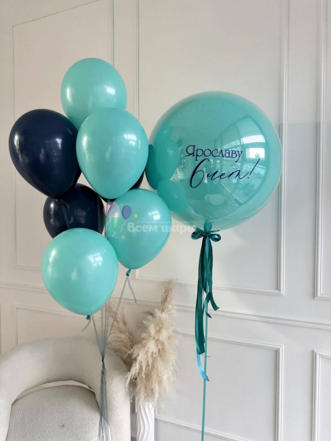 4) Если к шару добавляется еще и надпись, которая тоже имеет вес (так же как и перья, шарики и т.д.), то такие шары летают не более 2-3 суток и предназначены только для нескольких часов торжества. Да, они очень эффектные, но висят совсем недолго. Мы просим обращать внимание на данную информацию при заказе таких шаров.