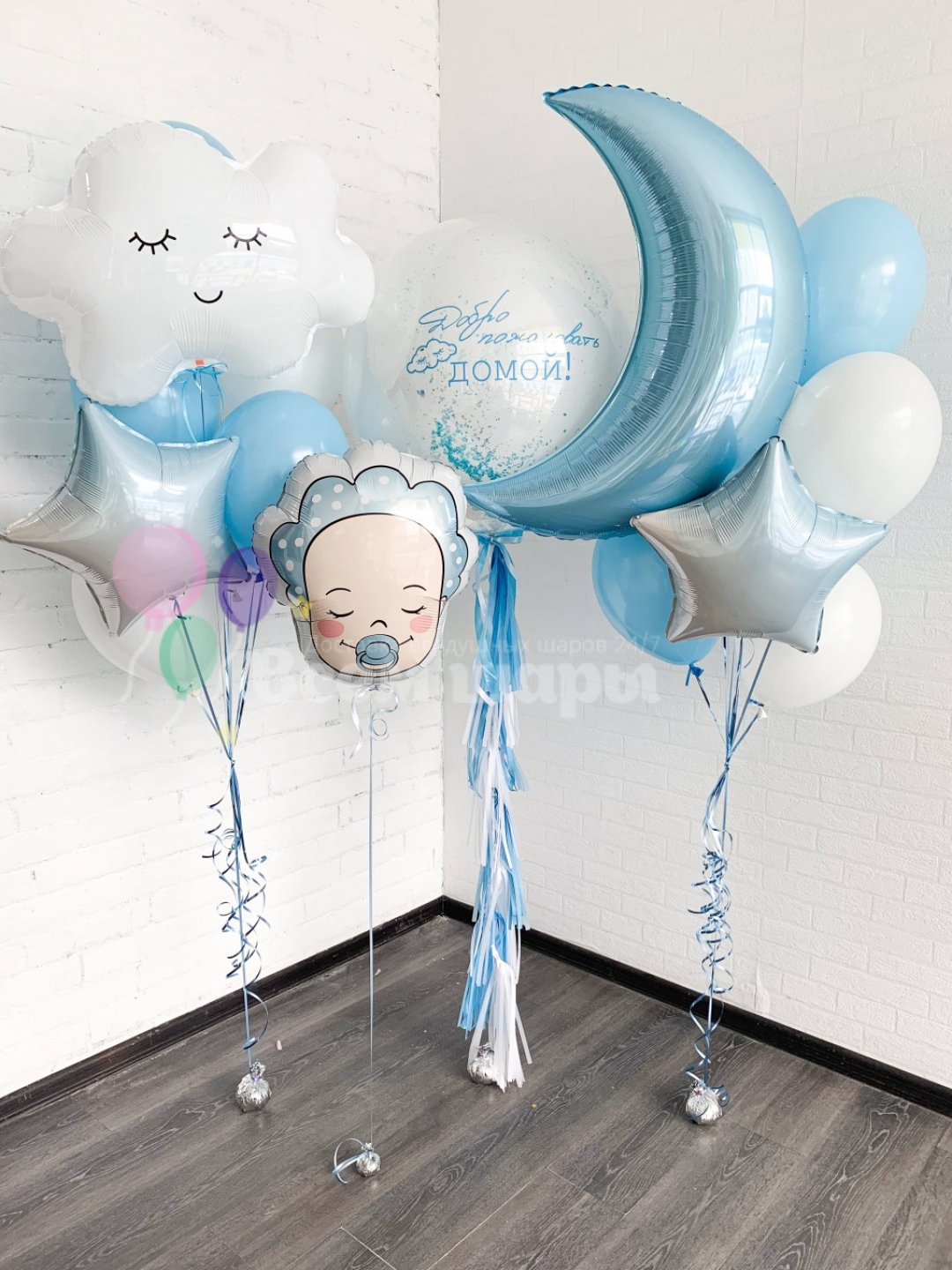 Воздушные шары на выписку для мальчика Добро пожаловать домой