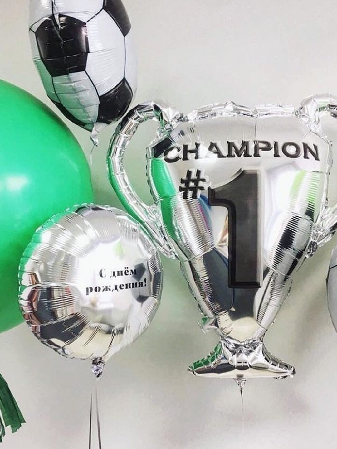 - 1 фольгировынный шар Кубок чемпиона серебряный ( 71 см)
