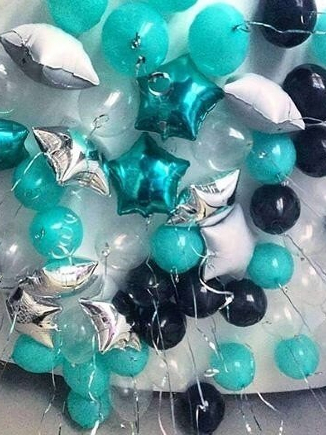 - 40 латексных шаров черные, мятные, прозрачные пастель (30 см)