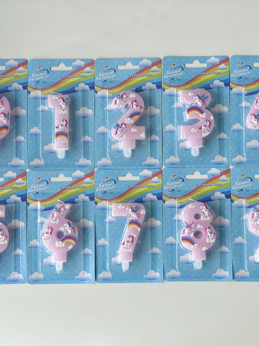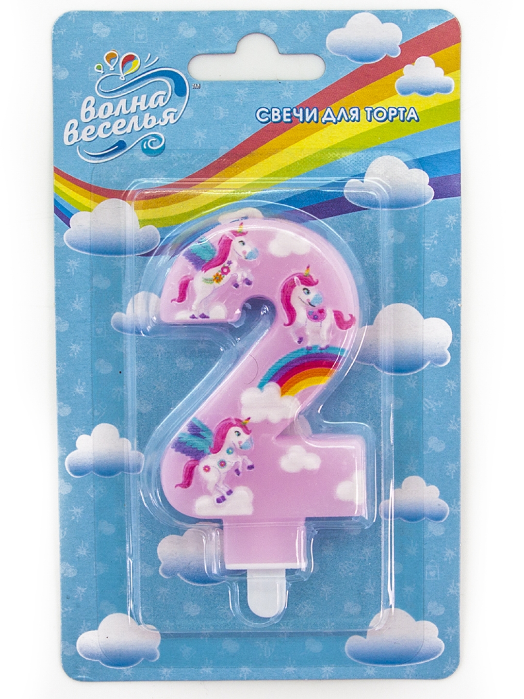 Свеча Цифра, Волшебные единороги, Розовый, 9 см, 1 шт.