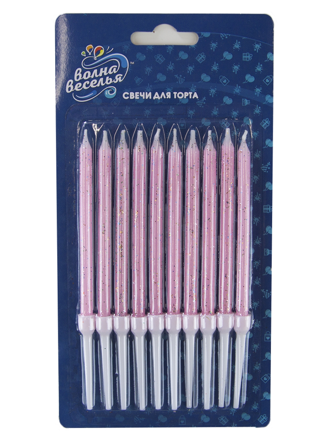 Свечи Розовый, с блестками, 10 см, 10 шт.