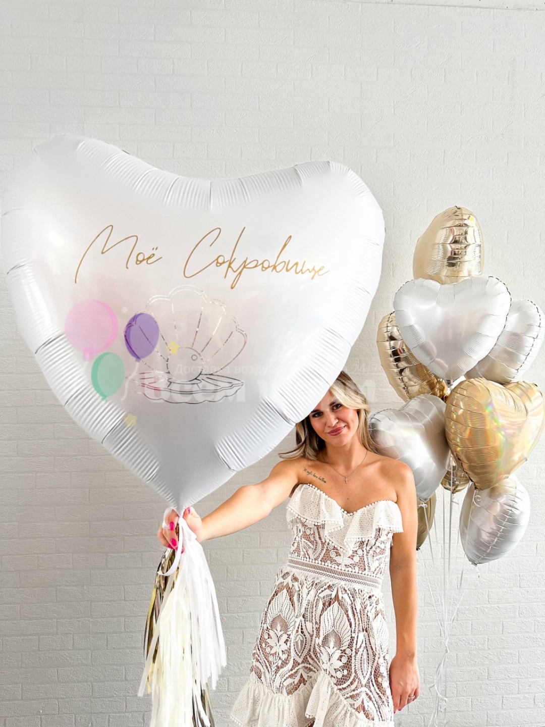 - Фольгированный шар сердце с надписью 90 см - 1 шт